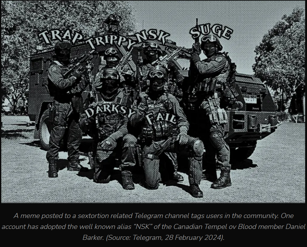 Berg, Tina-Desiree “Sextortion Coms: Inside a Vile Child Exploitation Cult Run by Nazi-Linked Teens: A three-year Unicorn Riot investigation reveals international scope of sadistic abuse and blackmail rings” Unicorn Riot, March 13 2024, https://unicornriot.ninja/2024/sextortion-coms-inside-a-vile-child-exploitation-cult-run-by-nazi-linked-teens/