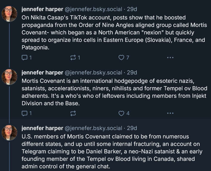 Following the April 2025 arrest of a Wisconsin teen for killing his parents and planning to assassinate Donald Trump, more information was released about the local parasitic vampire wannabe Barker, known by various aliases and for his leadership roles in accelerationist neo-Nazi projects with a satanist bent. Barker is an admin of Mortis Covenant, an accelerationist off-shoot group of the Order of Nine Angles (09A) and promoted by the Wisconsin teen Nikita Casap before his killing spree. Barker has also become an aspirational meme character for the child exploitation and sextortion elements in the international terror networks.