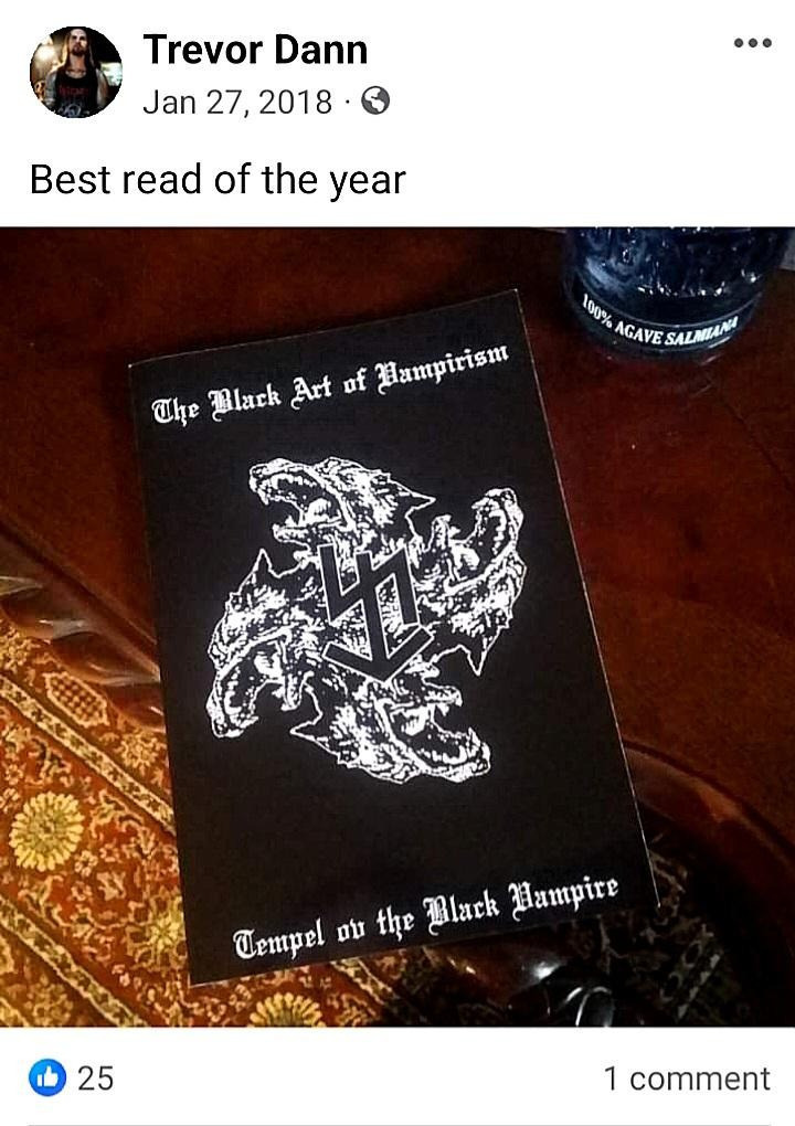 Barker also has his fingers in the writing, printing and distribution of Temple of Blood materials including the Tempel ov the Black Vampire (TOBV). One such book is promoted by his Vancouver associate Trevor Dann that plays in the local metal scene: