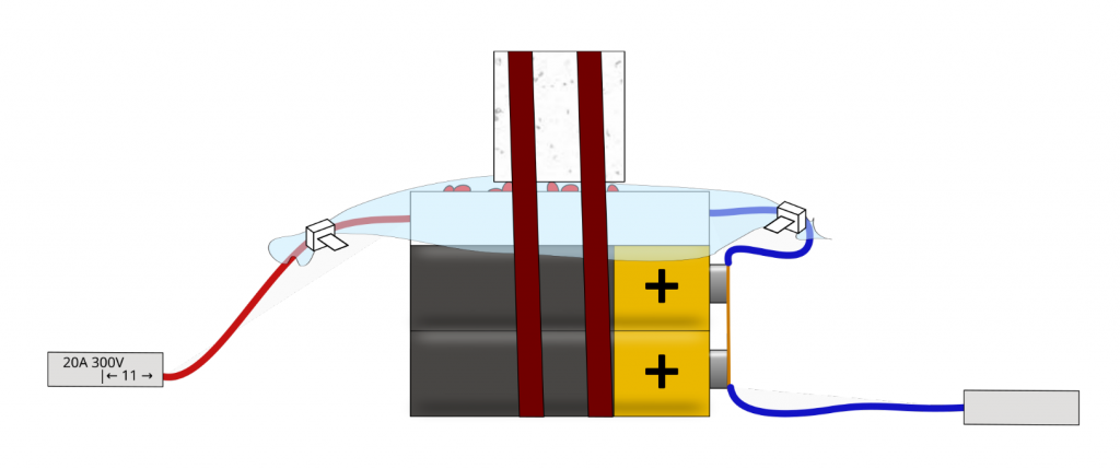 To increase igniter reliability, you could also freeze several completely independent circuits in the same block of ice. If you use several independent circuits, it is important that the wires can be clearly assigned, as the ice block is usually not very transparent. If the wrong connections are made in the heat of the moment, a logical AND circuit is created instead of an OR circuit, which defeats the purpose of the whole thing (i.e. the circuits will no longer be independent).