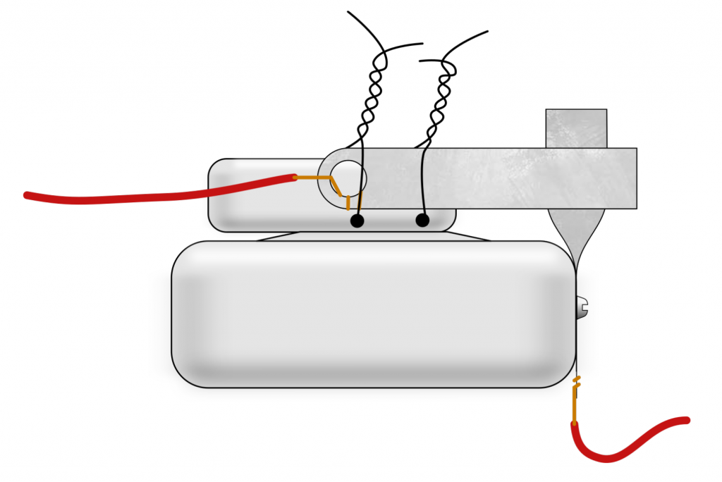 How the metal strips are attached depends on the model of egg timer you are using. In this case, two small holes were burned into the handle with a soldering iron, through which wires were fed. The other metal strip was bent and attached to the case with a screw. For other cases, it might be better to use hot glue or to cut a small slot into which the strips are inserted.