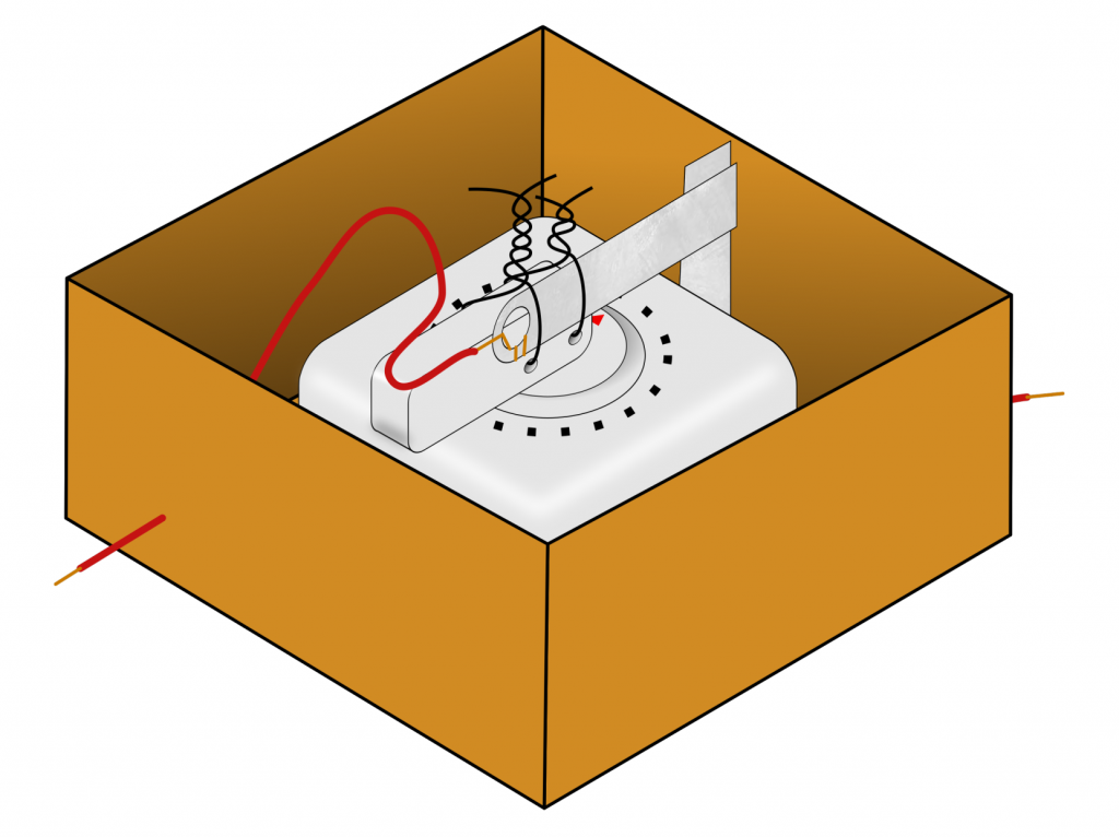To make sure that the movement of the timer is not obstructed in any way, you can glue it into a cardboard box. The wire must also have enough slack to allow for the necessary movement.